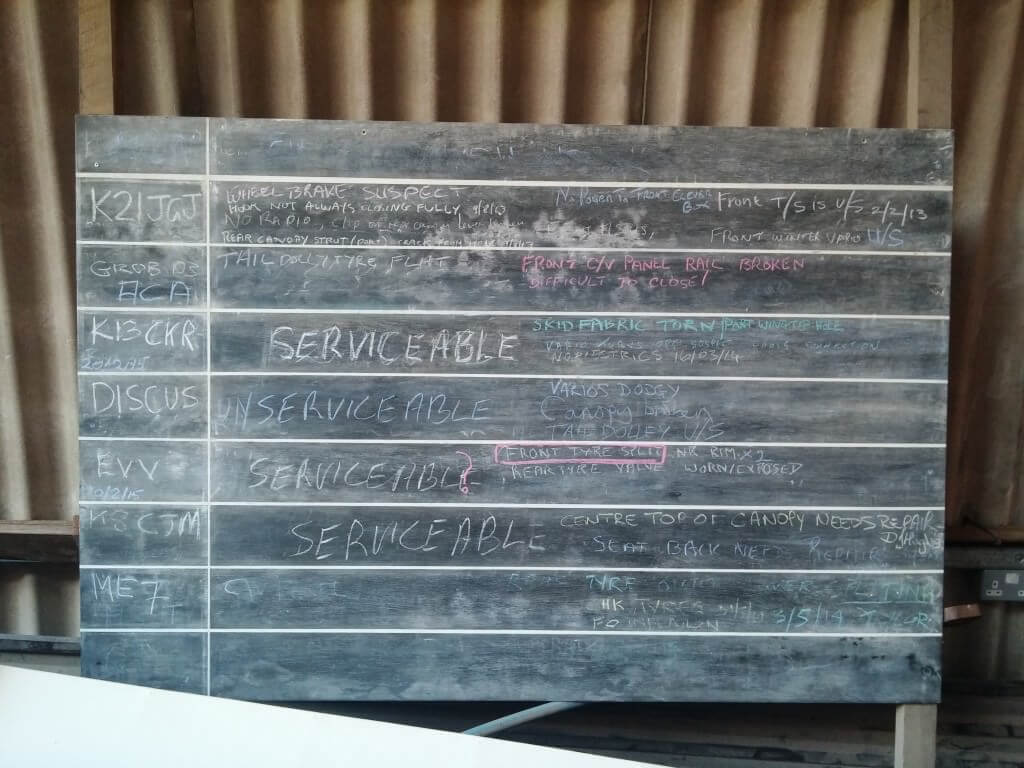 I also noticed this in the hanger. Front tyre split. Serviceable? Of course! Since when has that stopped us?!
