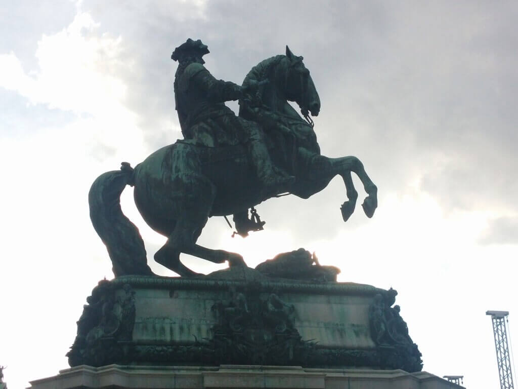 In front of the palace is the famous Heldenplatz (Heroes’ Square). There are two equestrian statues (men on horses) in front of the palace. One of them was more impressive than the other – the one that the artist successfully balanced on just the two hind legs of the horse.